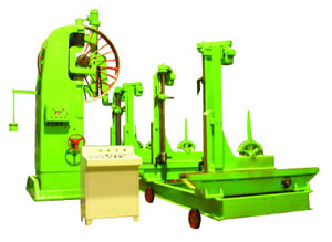 帶鋸機,以環狀無端的帶鋸條為鋸具,繞在兩個鋸輪上作單向連續的直線運動來鋸切木材的鋸機。主要由床身,鋸輪,上鋸輪升降和仰俯裝置,帶鋸條張緊裝置,鋸條導向裝置,工作臺,導向板等組成。床身由鑄鐵或鋼板焊接制成。